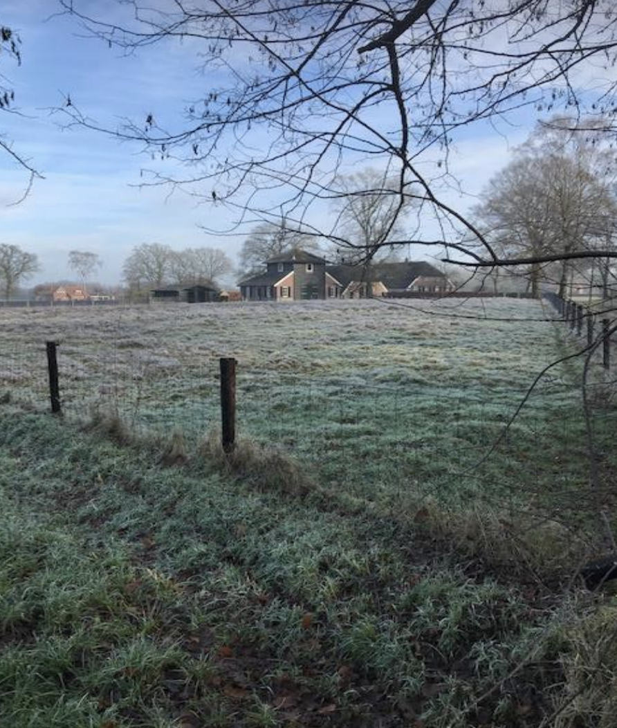 Op de foto zie je het stuk land dat nu bij onze boerderij hoort. Hier beginnen we binnenkort met de eerste aanplant. Op de achtergrond staan de boerderij en 2 schuren. We hopen later dit jaar nog een stuk land achter de boerderij te kunnen kopen.