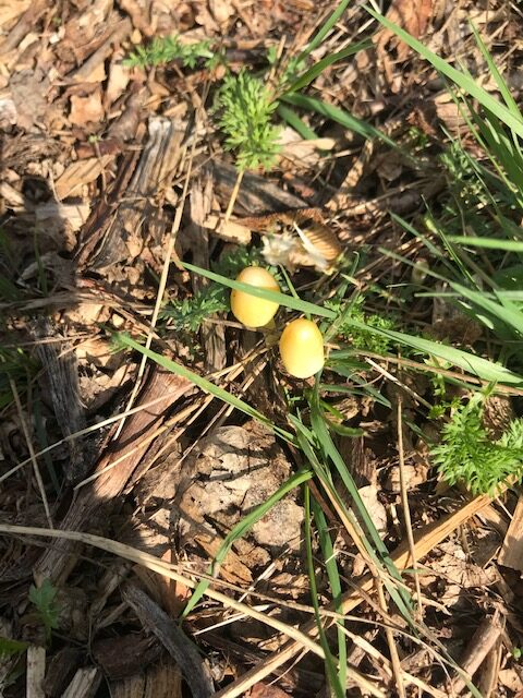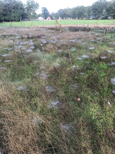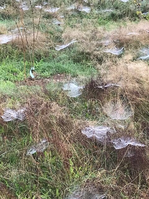 De lente en de zomer zijn voorbij en de herfst doet zijn intrede. Vooral ´s ochtends is dat te zien aan de grote hoeveelheid spinnenwebben die over het voedselbos liggen. Een enkele struik is al aan het verkleuren. De eerste paddenstoelen zijn gesignaleerd.