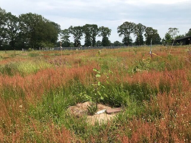 Onlangs hebben we de stand van zaken geïnventariseerd. Van sommige struiken en bomen is het duidelijk dat ze niet aangeslagen zijn of alsnog dood zijn gegaan. Van andere is dat nog niet met zekerheid te zeggen. We gaan er vanuit dat ongeveer 25% van de eerste aanplant vervangen moet worden. De late nachtvorst en de droogte hebben daarbij een rol gespeeld. Soms is het ook niet duidelijk waarom in een rijtje met dezelfde planten er eentje het niet doet of alsnog dood gaat.